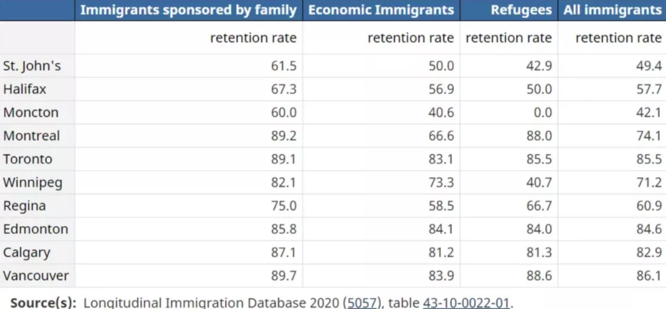 加拿大統計局最近發表了一項關于移民在哪些城市和省份停留時間最長的研究。
