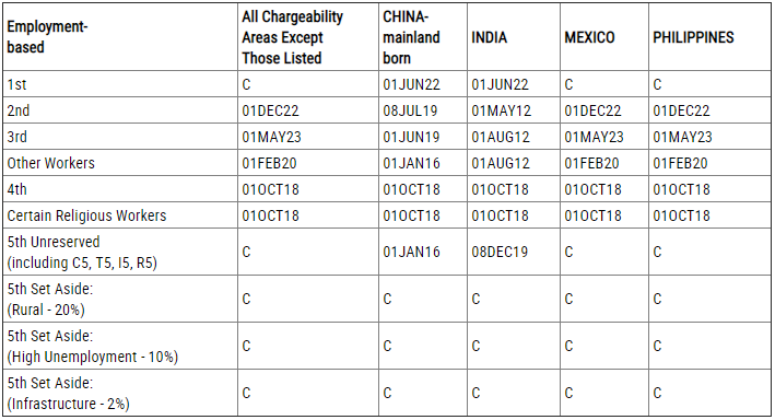 EB-4:排期為2018年10月1日,無變化