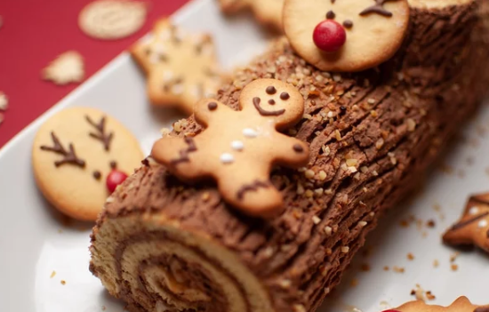 法國(guó)新年大餐最后的壓軸甜點(diǎn),一定是樹(shù)干蛋糕搭配香檳。那是一種外觀裝飾得特別漂亮的奶油夾心蛋糕,年終節(jié)慶期間每間面包店都會(huì)推出。