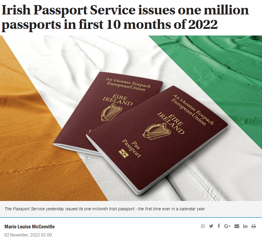 愛(ài)爾蘭今年創(chuàng)紀(jì)錄簽發(fā)100萬(wàn)本護(hù)照