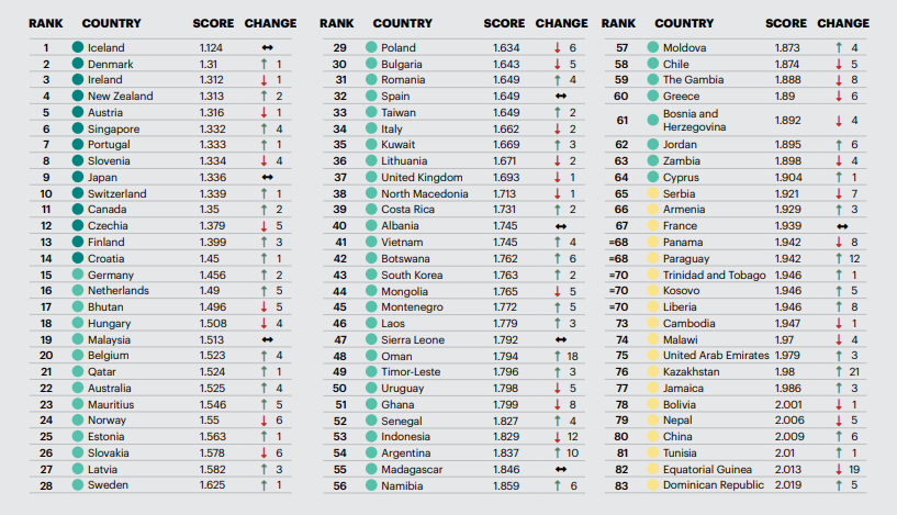 近日,國際智庫經(jīng)濟與和平研究所IEP最新發(fā)布第17版《2023全球和平指數(shù)》報告,冰島、丹麥和愛爾蘭位列前三名。