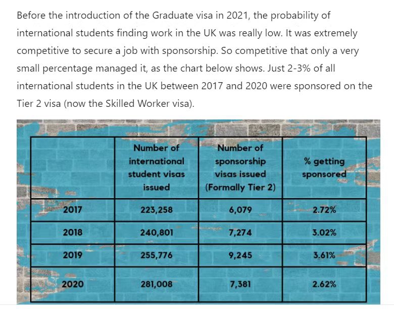 英國官方數據顯示,2017-2020年,僅有2%-3%的留學畢業生找到正式工作成功留英。